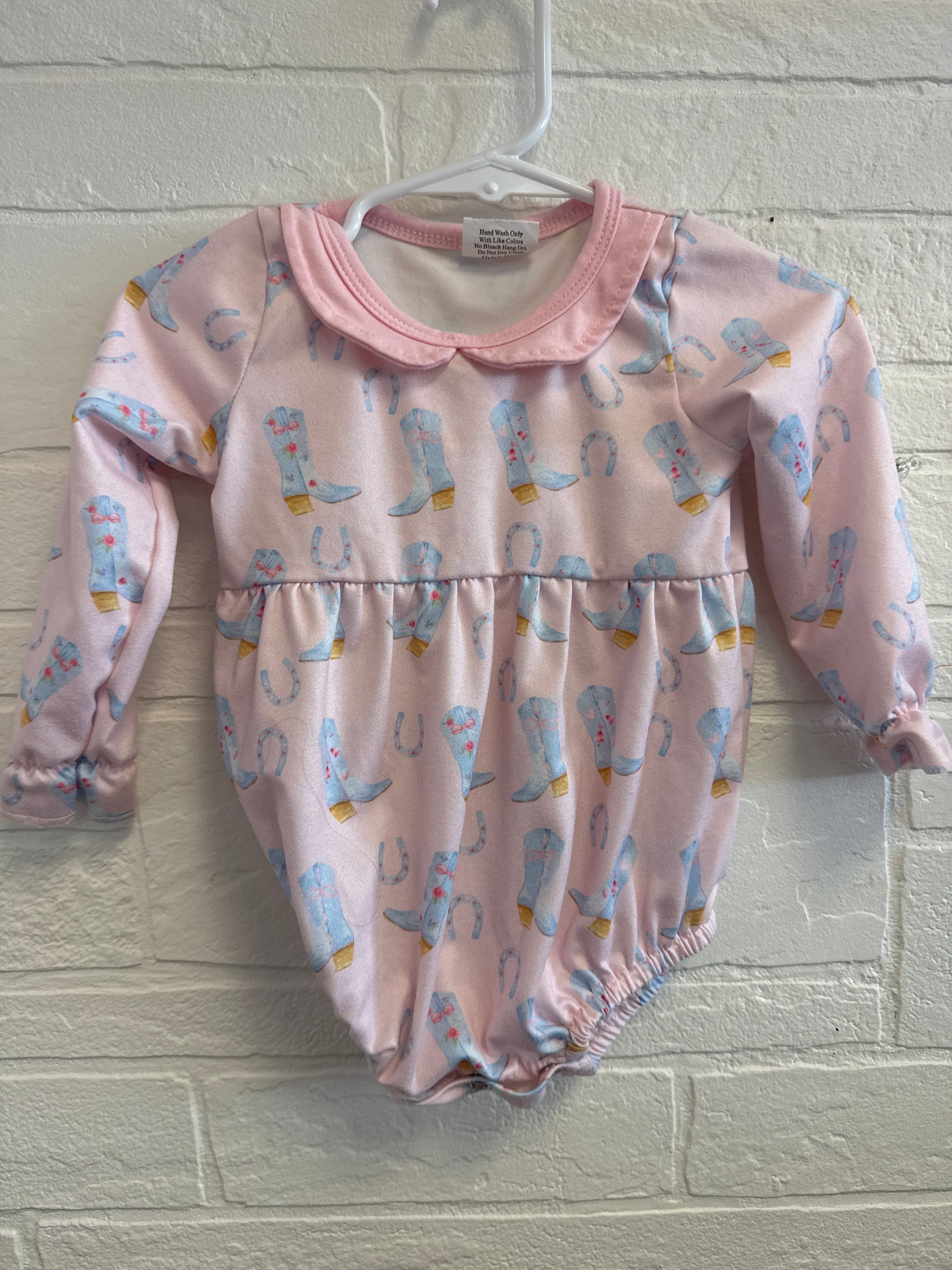 3-6m Pink Cowboy Boots + Horseshoes Bubble Romper