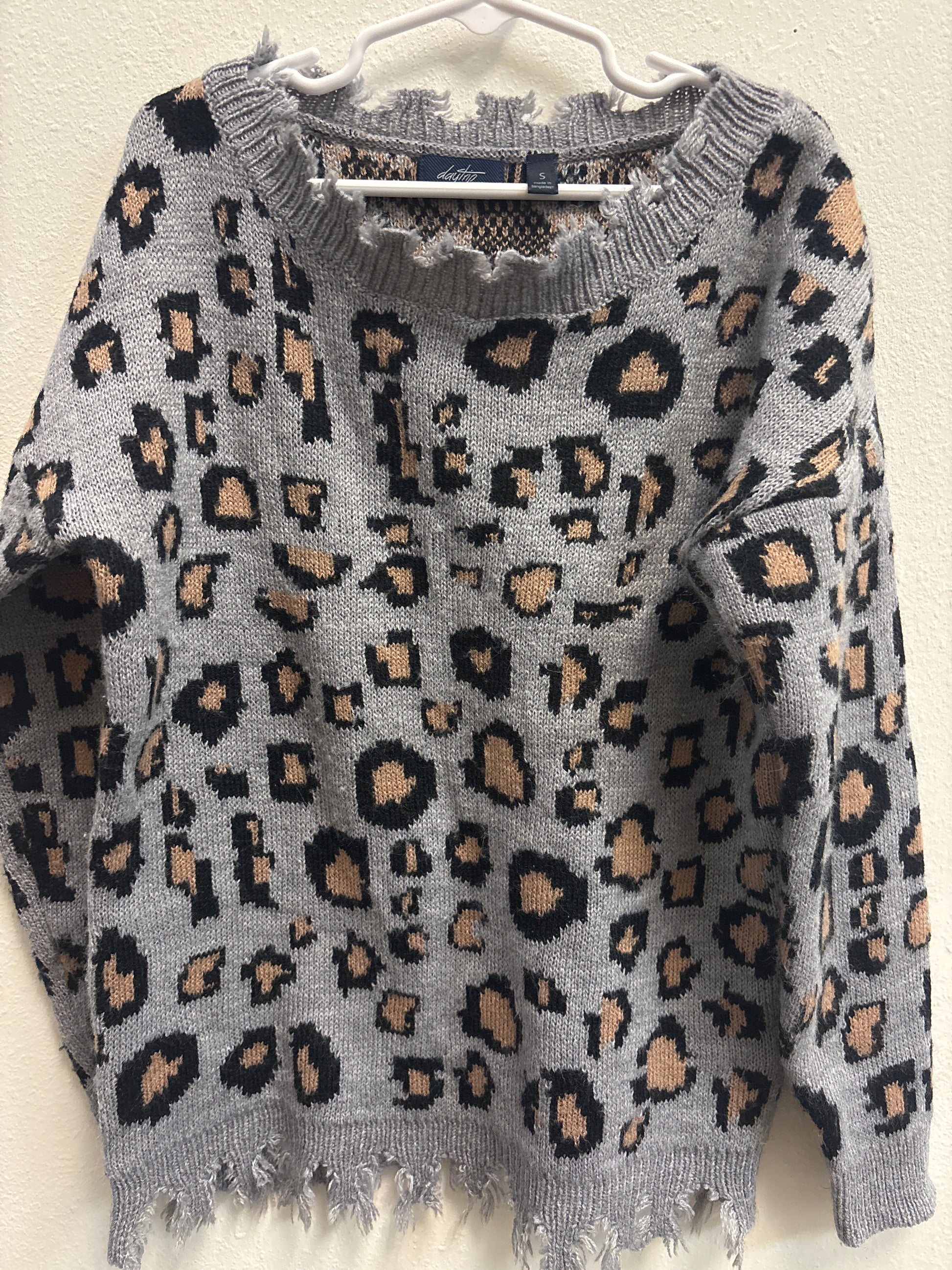 S 7-8 Daytrip Leopard Fringe Sweater